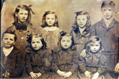 Turner children, l-r back row: Annie , May, Doris, Charles. Front l-r: Albert, Fanny, Kate, Elizabeth.