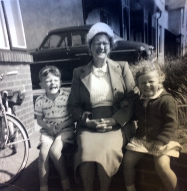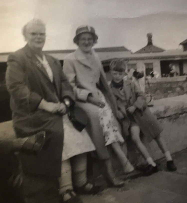 Robert, Nana and me in our auntie’s garden, Biggar Bank, early 1960s